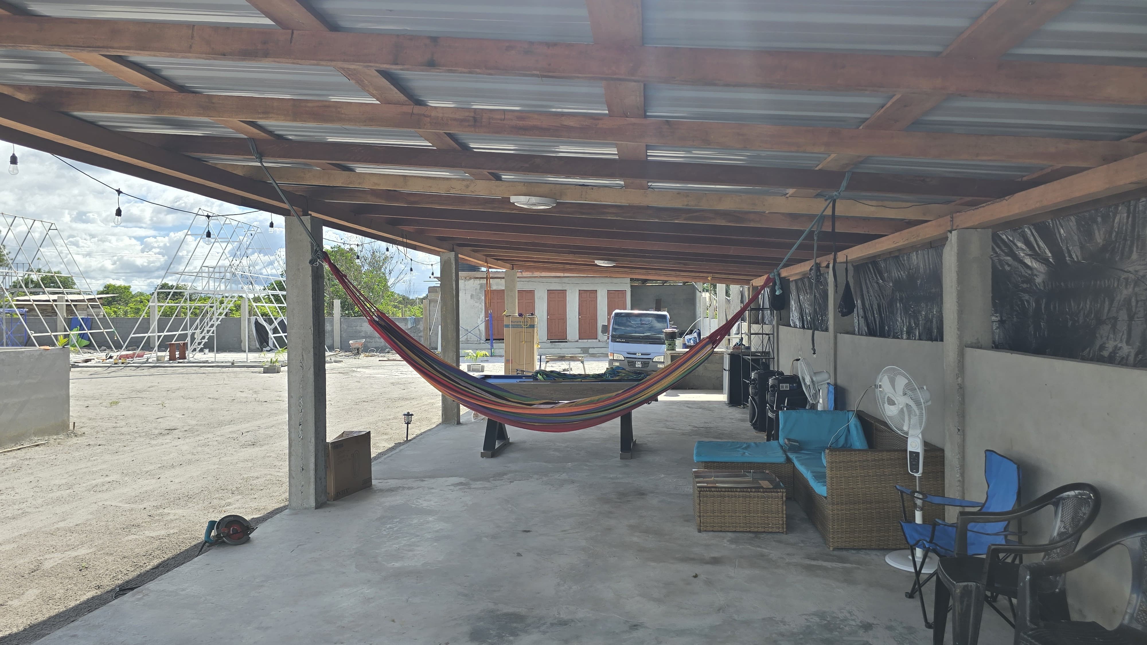 A 50-foot shed serves as a dwelling area, equipped with a pool table, outdoor seating (sofa, hammocks & Chairs), a BBQ grill, fireside , refrigerator, shelving, counter space, sink, solar lighting, and electrical outlets for charging devices. Two large music systems are available for entertainment. Evening options include outdoor movie screenings, campfires, or simply relaxing under the stars. Our restrooms feature pressurized water, sinks, lighted mirrors, and hot and cold showers.